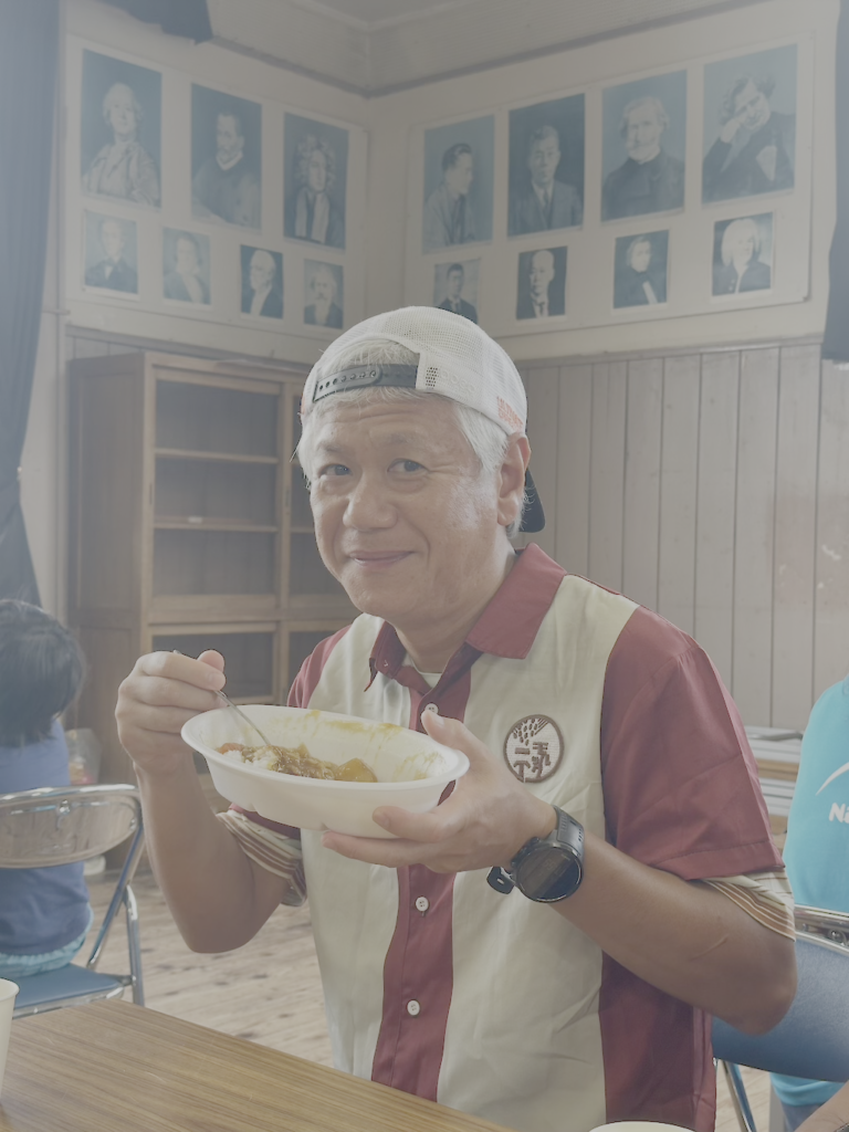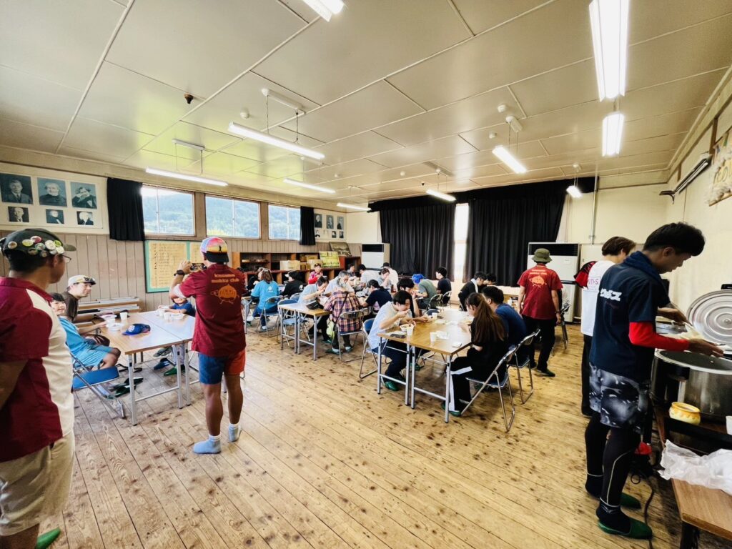 里山風景のもと、試合前にはストレッチしたり、お昼には、地元のジャムを試食、学校のカレーを食べました!