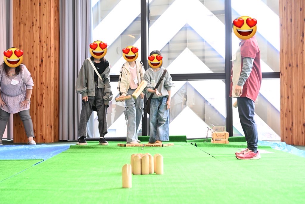 休憩時間や交流時間には、モルック体験会も実施しました。